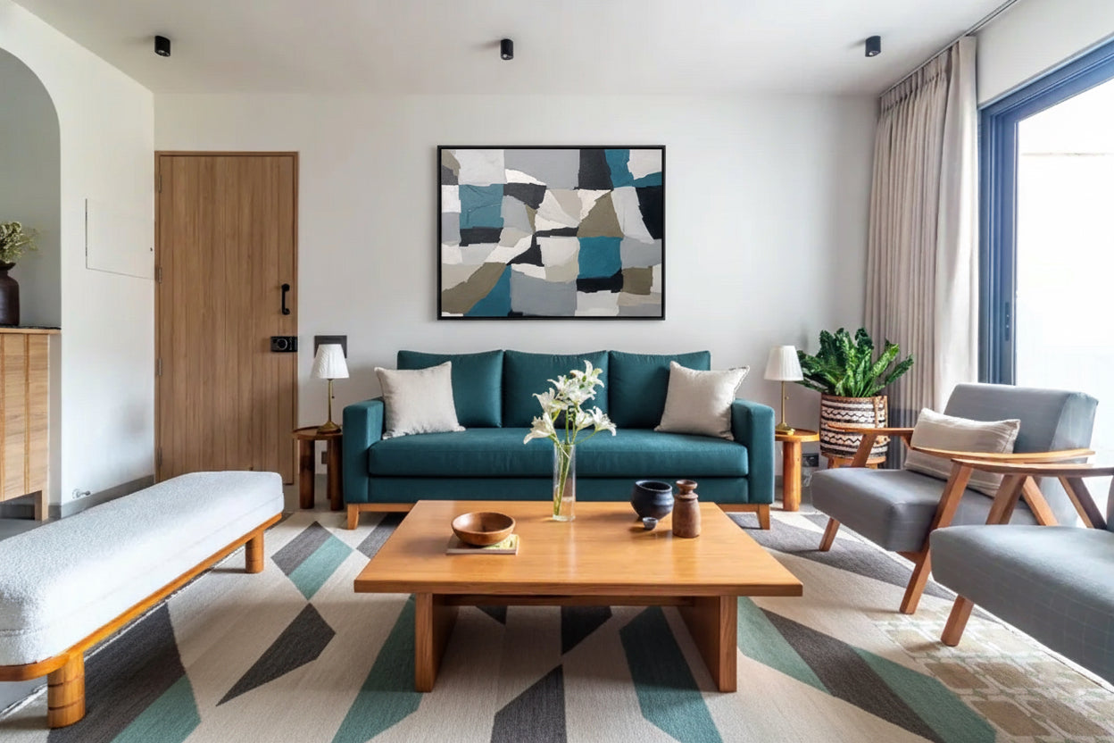 Transform your living space with the Whispers of the Ocean Painting, a magnificent 36x48 inch acrylic artwork that elegantly captures the serene essence of the sea. The harmonious blend of cool colours creates a tranquil atmosphere, perfect for contemporary decor. Invite a sense of calm and contemplation into your home with this stunning piece. Specifications: Size: 36x48 inches, Medium: Acrylic on canvas, Frame: No frame included.