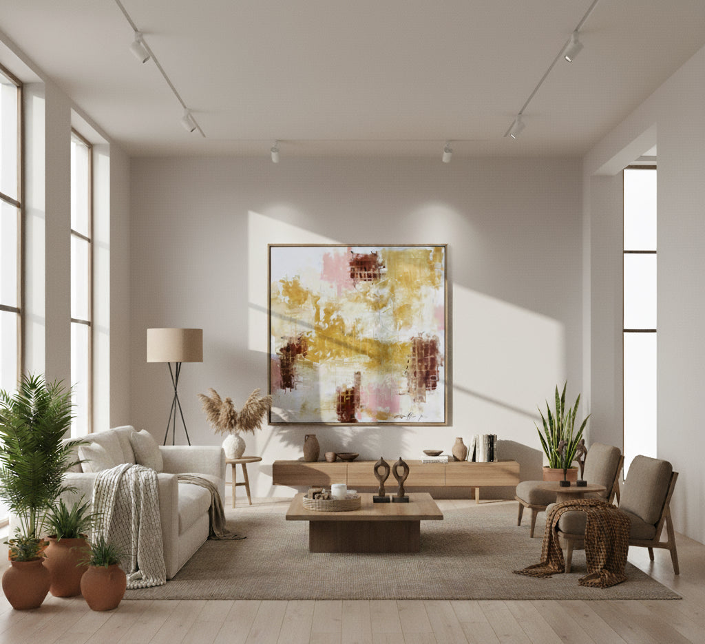 The Desert Rose painting brings together soft pinks and earthy beige tones, creating a textured harmony that evokes the warmth of desert landscapes. This acrylic on canvas piece is designed to infuse tranquility into your home decor. Specifications: Size - 36x36 inches, Medium - Acrylic on Canvas, Frame - No.