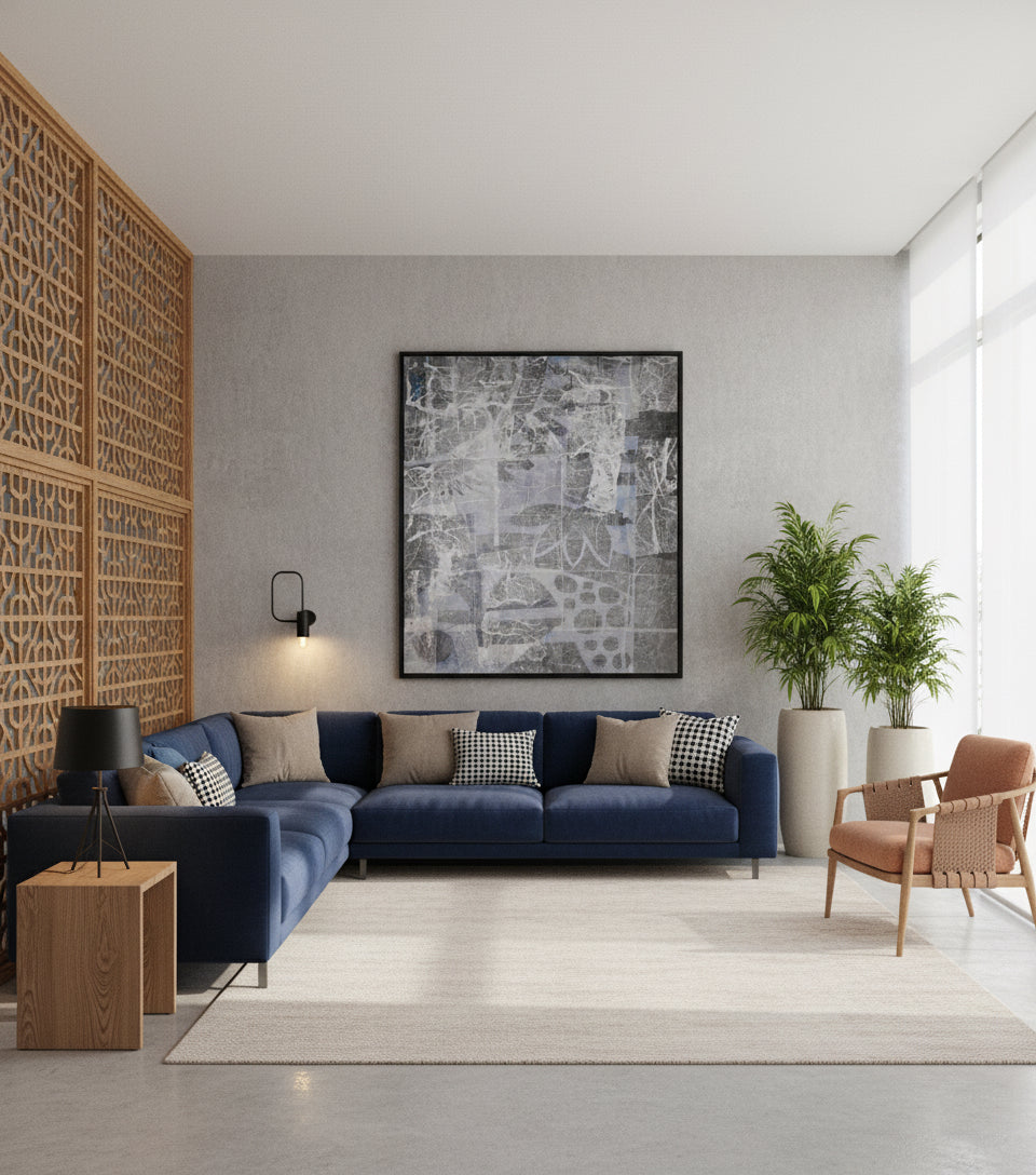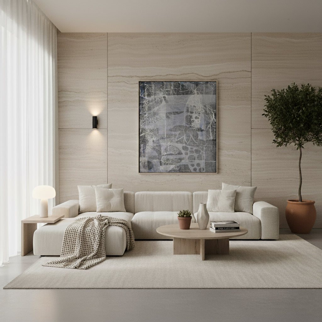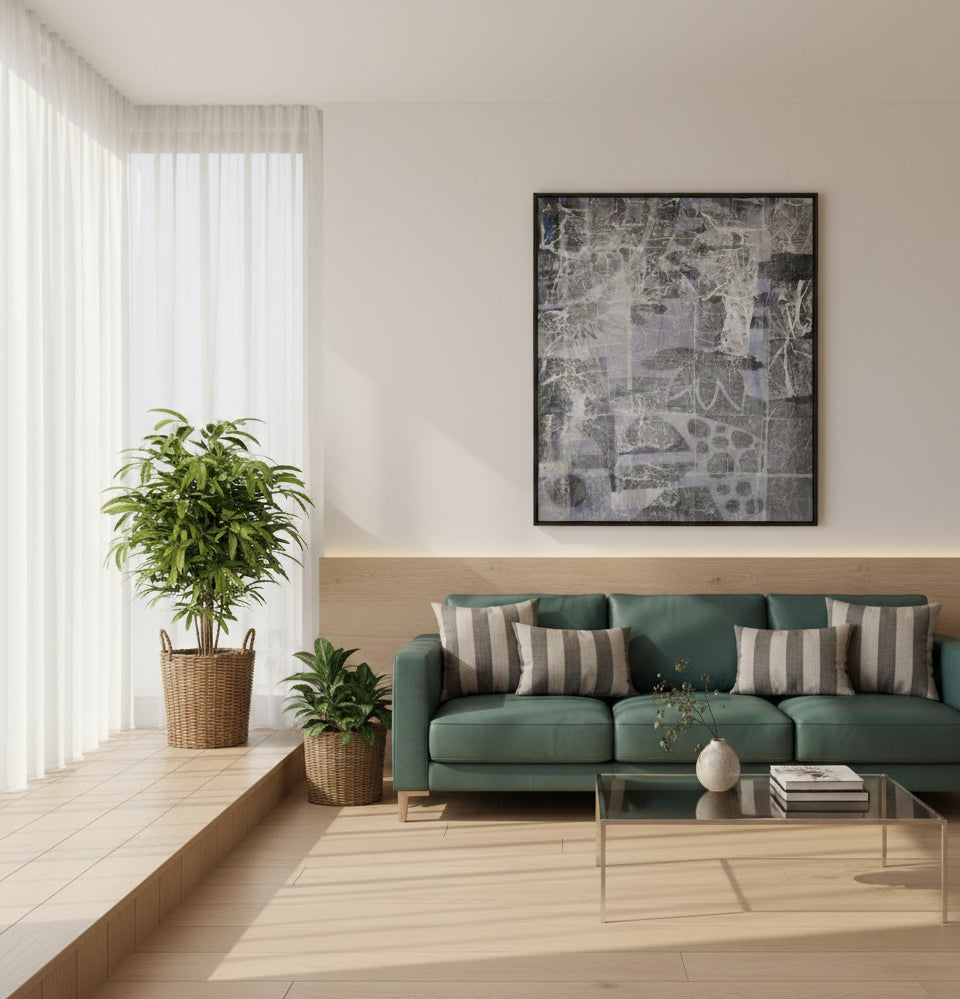Even in the quietest spaces, nature speaks. These abstract flowers emerge from a grey background, offering balance and serenity.